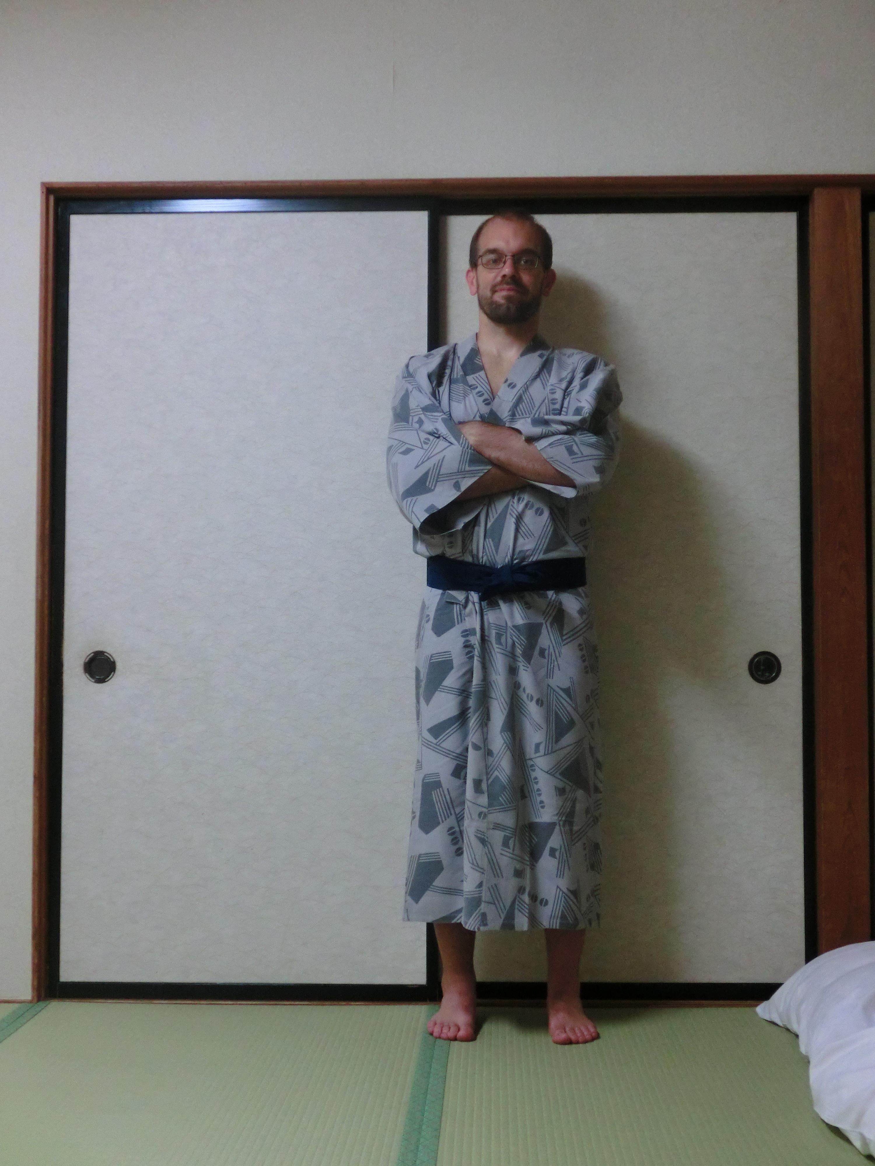 In Kinugawa-Onsen habe ich mir für zwei Nächte ein Ryokan gegönnt (inkl Halbpension ~100€ pro Nacht). Das ist also ein traditionelles japanisches Gasthaus mit Bambusmatten im Zimmer, man sitzt mehr oder weniger auf dem Boden, hängt rum im Kimono, bekommt traditionelles Frühstück und Abendessen und kann das heiße Bad des Hauses nutzen.