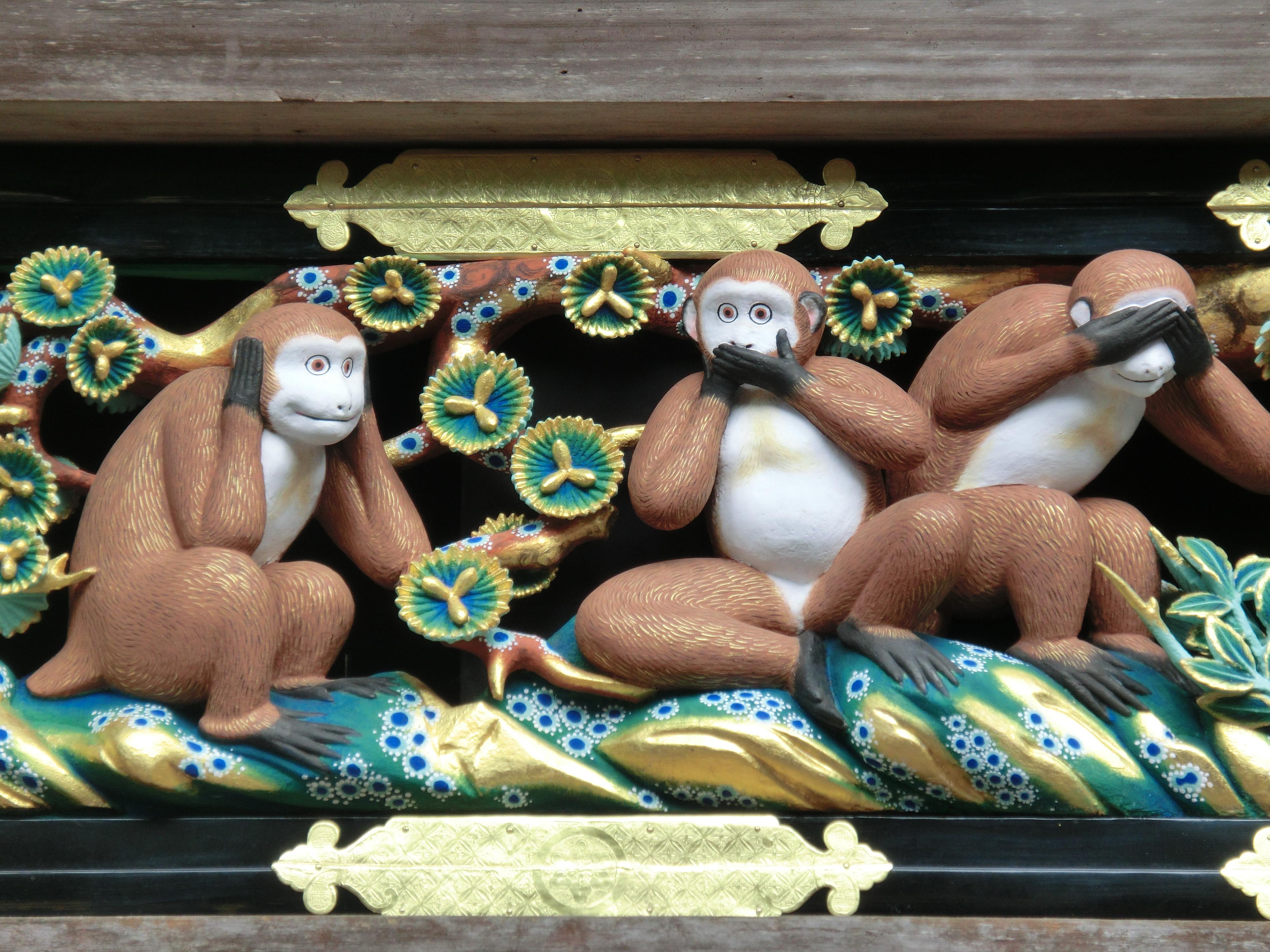 Außerdem kommen hier die berühmten drei Affen her: „Nichts sehen, Nichts hören, Nichts sagen“. Die sind eingeschnitzt in einen Pferdestall sollen eigentlich mit vielen anderen Abbildungen die Moral, die man als Mensch im Leben verfolgen soll, verdeutlichen.
