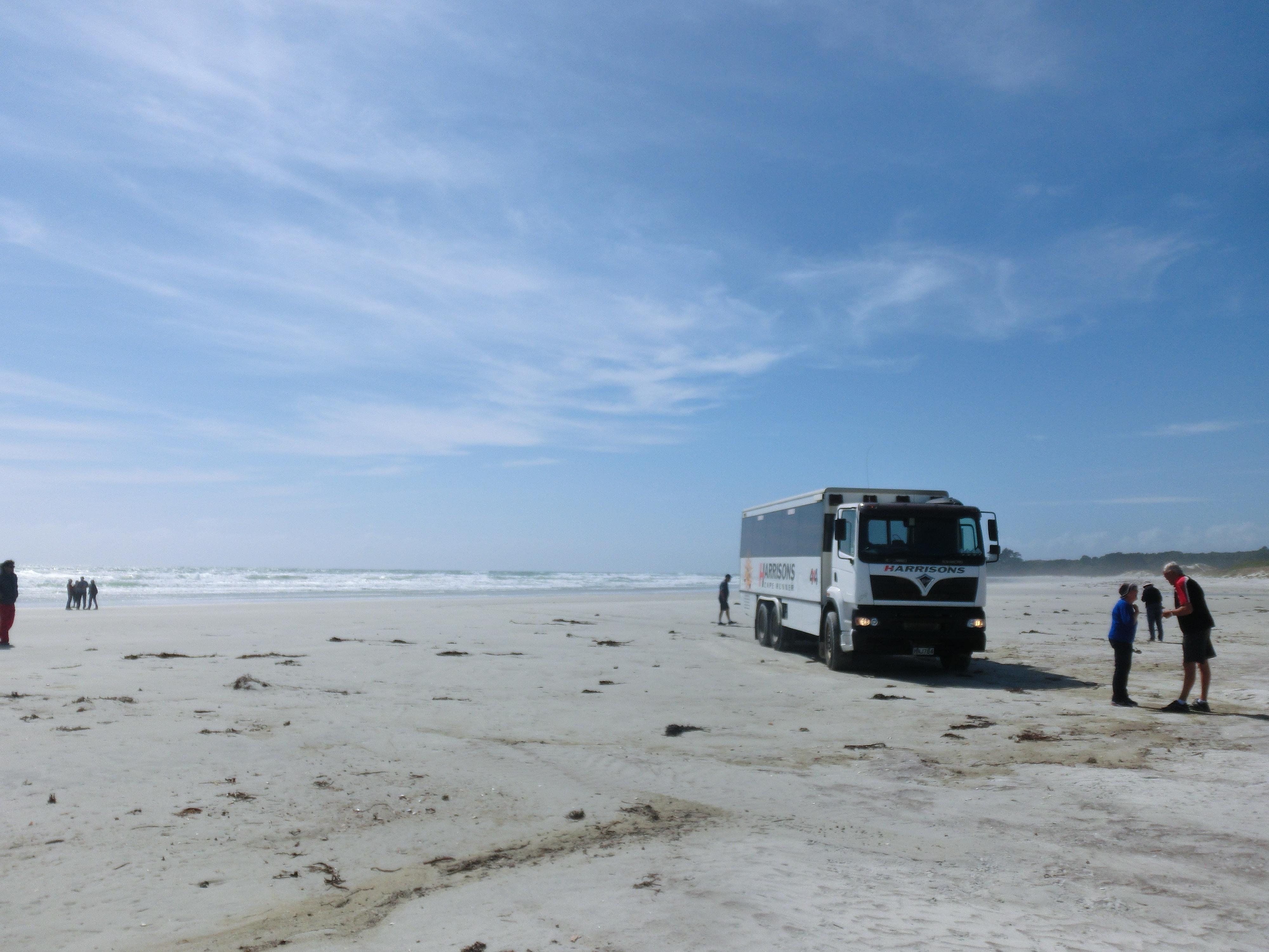 Cape Reinga (der nördlichste Punkt der Nordinsel) habe ich mit einem Busunternehmen gemacht von Kaitaia aus. Das war besser als selber fahren. Der Busfahrer war spassig und konnte viel erzählen zum Land und Kauri-Bäumen. Außerdem konnte er mit dem 4-Rad Antrieb zurück den 90-Mile Beach fahren. Bei Ebbe ist der Strand wie eine Autobahn und man kann dort – mit Vorsicht – ca. 100 kmh fahren.