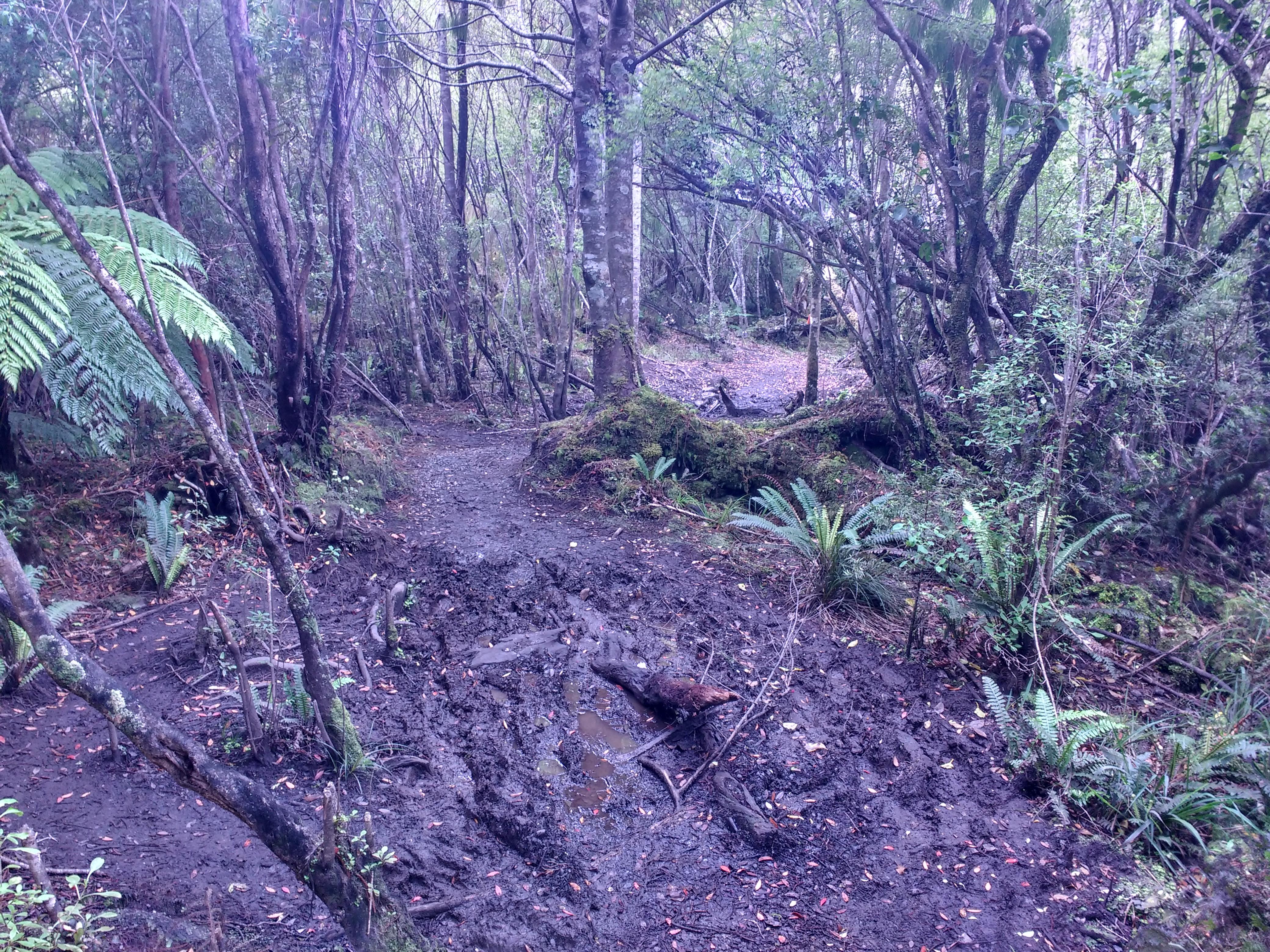 Am zweiten Tag ging es dann wandern für drei Tage und zwei Nächte -> Einen weiteren Great Walk, den Rakiura Track. Die beiden Hütten hatte ich mit Glück separat gebucht. Viel war nicht mehr frei. Man hätte die 36km auch in weniger Tagen laufen können, aber erstens wollte ich ja nicht hetzen und zweitens kommen auch noch die km bis zum jeweiligen Anfang und Ende dazu. Das Wetter war etwas wechselhaft, aber richtig geschüttet hat es nicht. Die Landschaft war nicht soo abwechslungsreich wie auf den anderen Great Walks, jedoch gab es einige historische Stätten der frühen Holzfäller und der Maoris zu sehen. Auch der DOC Ranger in der ersten Hütte war lustig drauf und hatte einiges zu erzählen. (Unter anderem von einem einsamen Seelöwen einige Jahre zuvor, der es sich trotz mehrmaligem verscheuchen in der Damentoilette der einzigen Kneipe af Stewart Island bequem gemacht hatte und wohl für einigen Schrecken gesorgt hat.)