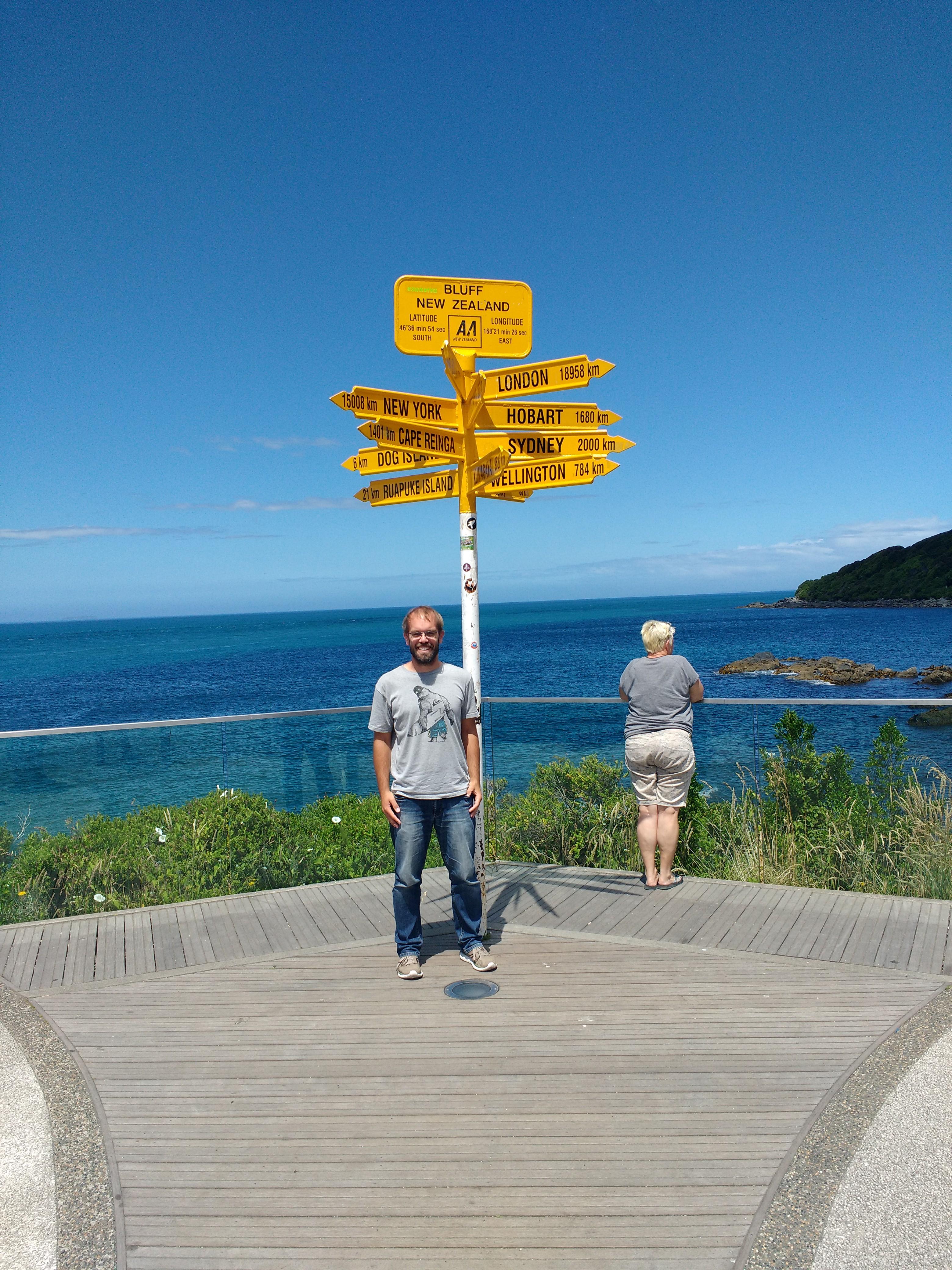 Bluff ist der südlichste Punkt („Stadt“) der Südinsel. Ist sehr überschaubar und nicht wunderschön. Eine Übernachtung auf dem einzigen Campingplatz war nötig wegen der Fähre, die am nächsten morgen nach Stewart Island abfuhr. (Invercargill ist die nächstgrößere Stadt, aber ich hatte auch nicht wirklich gutes von dort gehört – also Bluff).