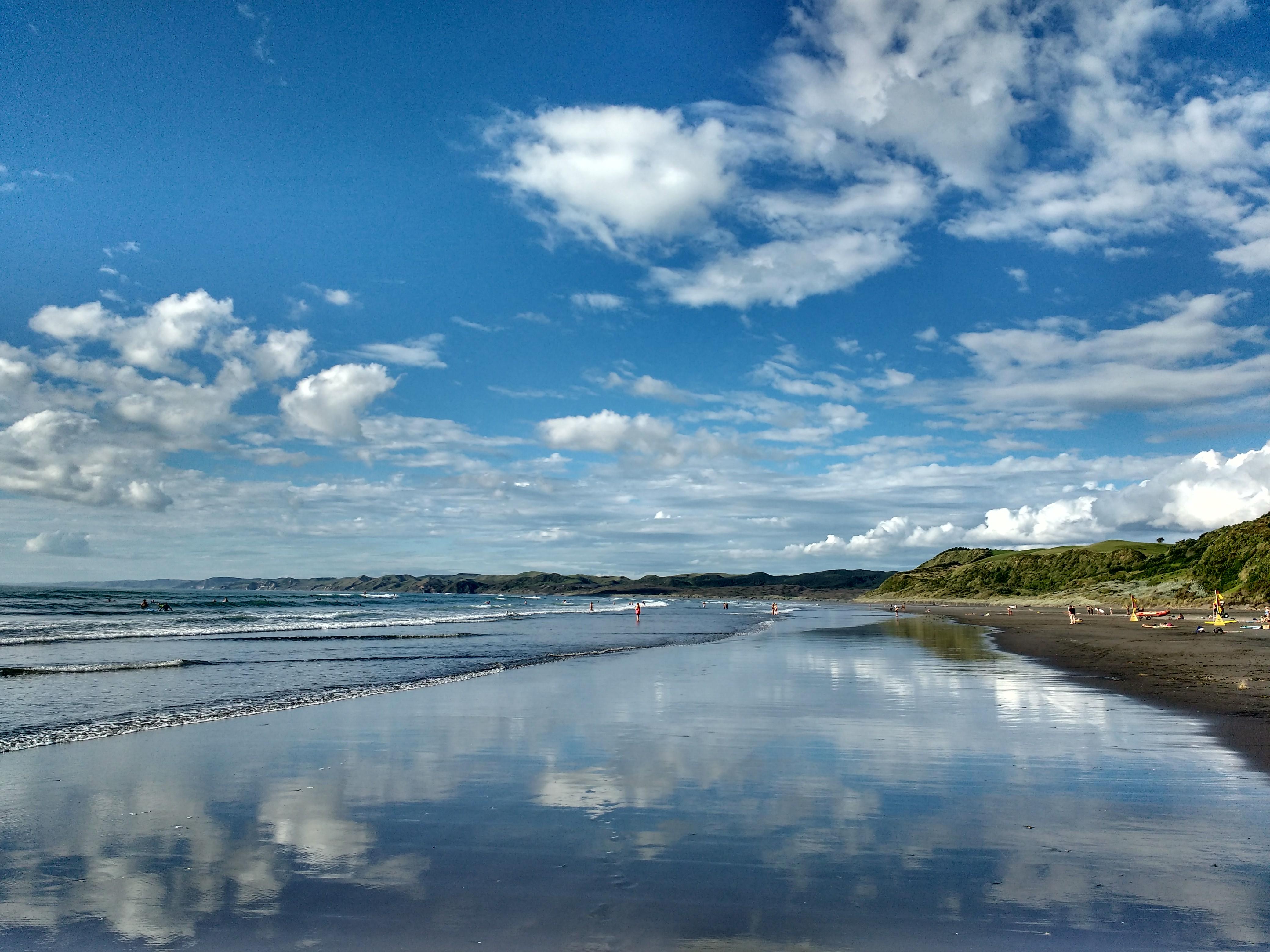 Weil es mir vorher schon gut gefallen hatte, bin ich dann noch mal an die Golden Bay gefahren. (Ohne eigenes Auto schon schwieriger: Bus-Shuttle und Anhalter waren die Lösung – aber alles easy) Ein paar Tage hatte ich noch Zeit, bevor es weiter nach Auckland gehen sollte. Ein bisschen ausruhen am Strand… Ich war so relaxed, dass ich mich plötzlich in meiner ersten Yoga-Stunde wieder gefunden habe. Aber es tat nicht weh. Farewell Spit, die nördlichste Stelle der Südinsel habe mir diesmal noch angesehen: Fantastische Aussicht und tolle Strände mit Seehund-Babies. Die gesamte Fahrt per Anhalter hin und zurück. Hab ich vorher noch nie so gemacht. Ein Deutscher mit englischer Mutter, ein Paar aus Minnesota und zwi französiche Backpacker im Campervan (ich liegend hintendrin 😉 ) waren interessante Reisebegleiter. Vorher hatte ich immer Leute mitgenommen mit meinem Auto…