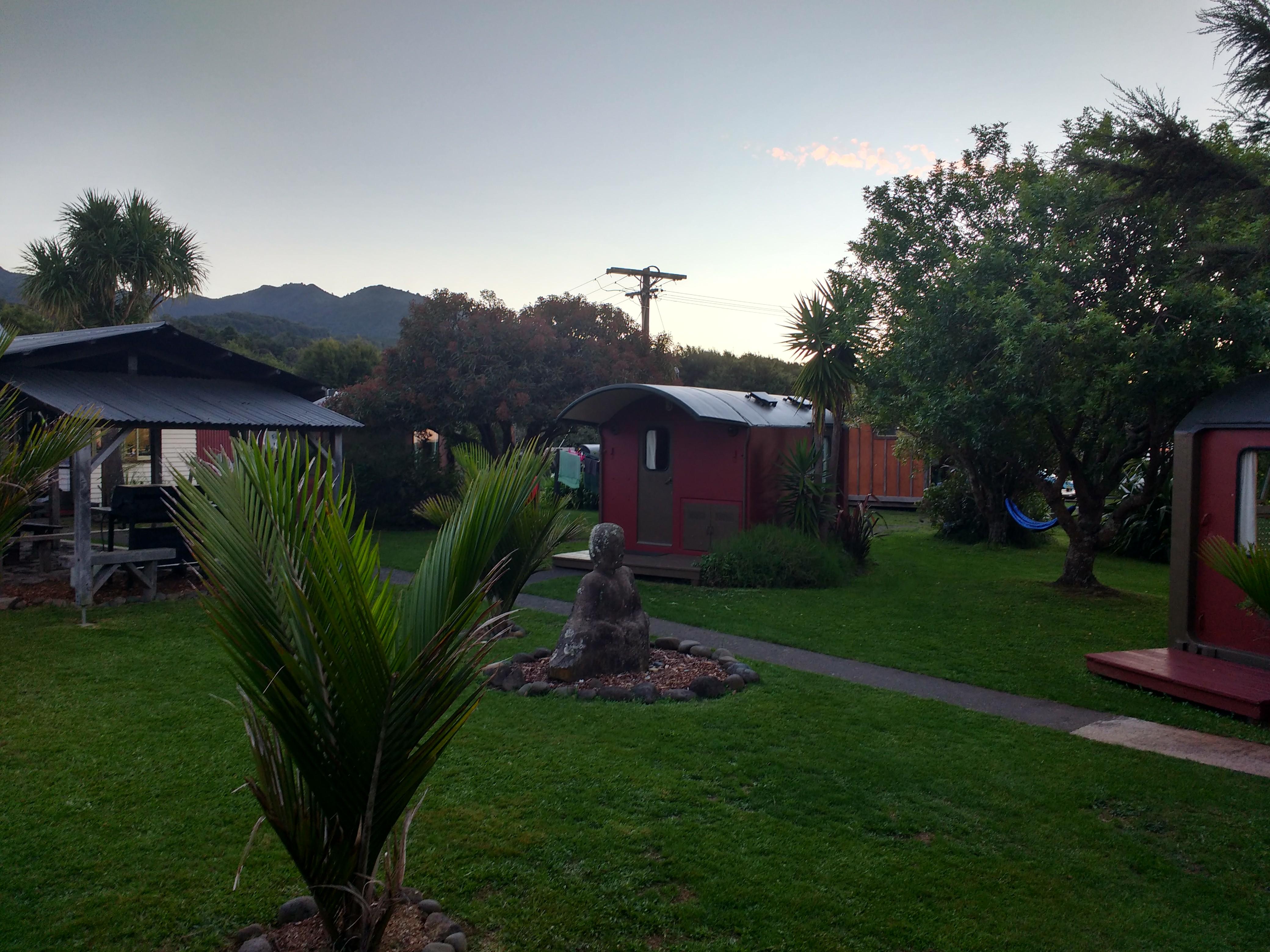 Die Coromandel Halbinsel hatte ich nur einen Tag gesehen, daher zuerst dorthin. Meine geplant letzte Tageswanderung fiel ins Wasser: angekommen am Visitor Center erklärte mir die nette Dame, dass vom Visitor Center aus alle Tracks unpassierbar seien aufgrund von Unterspülungen und kaputten Brücken. Man hätte sich die 15 km Schotterpiste sparen können, wenn man die Webseite richtig gelesen hätte. Ich hatte mich nur gewundert, dass man wochenlang nicht in der Hütte übernachten konnte -> muss sehr beliebt sein die Strecke! (oder eben gesperrt 😉 ) Kürzere Wanderung zu Kauri Bäumen war aber möglich. In Thames habe ich 2 Nächte im 8-Bett Zimmer übernachtet (gehörte zum Campingplatz) – ich war lustigerweise 2 Nächte alleine dort.