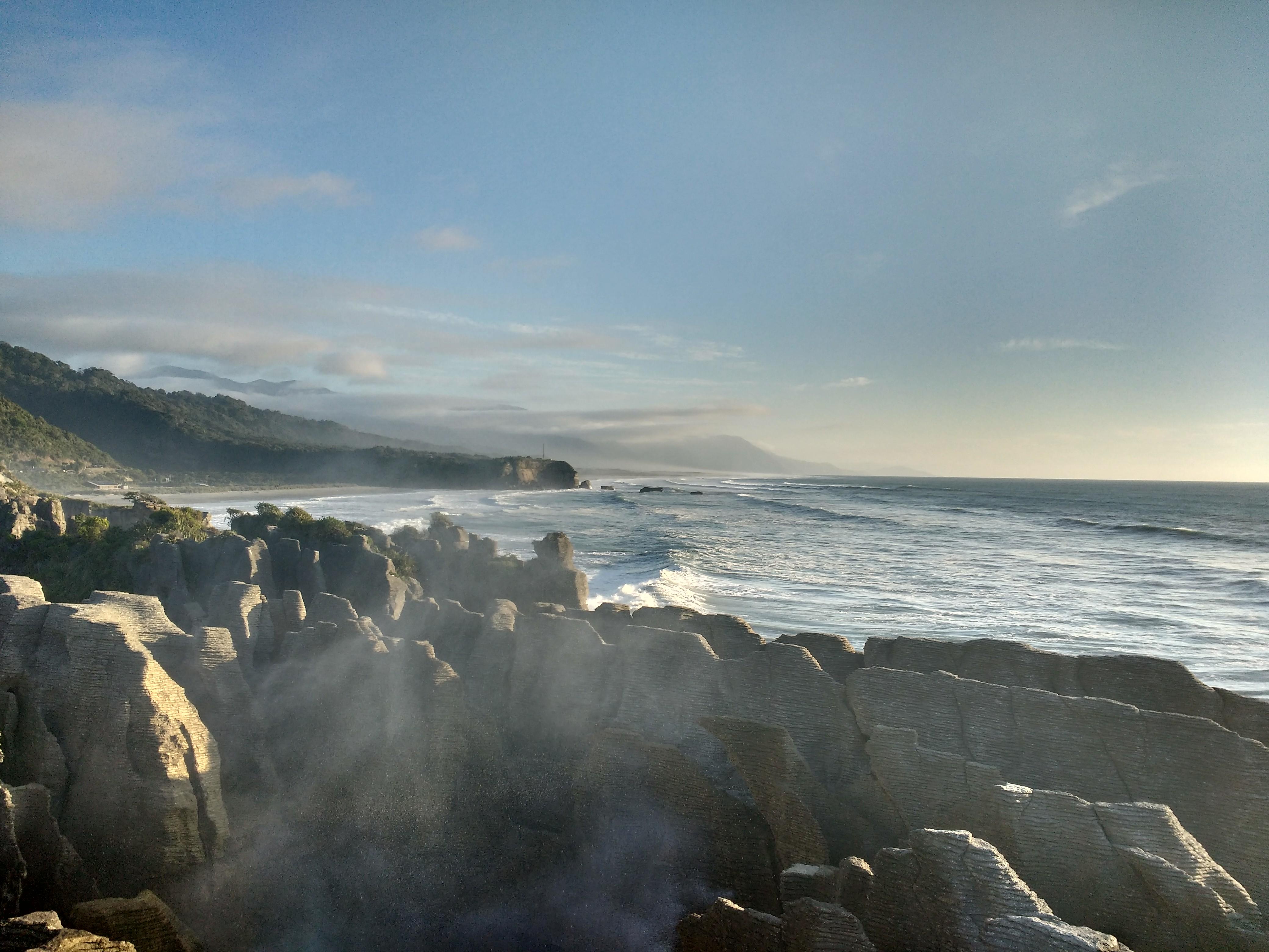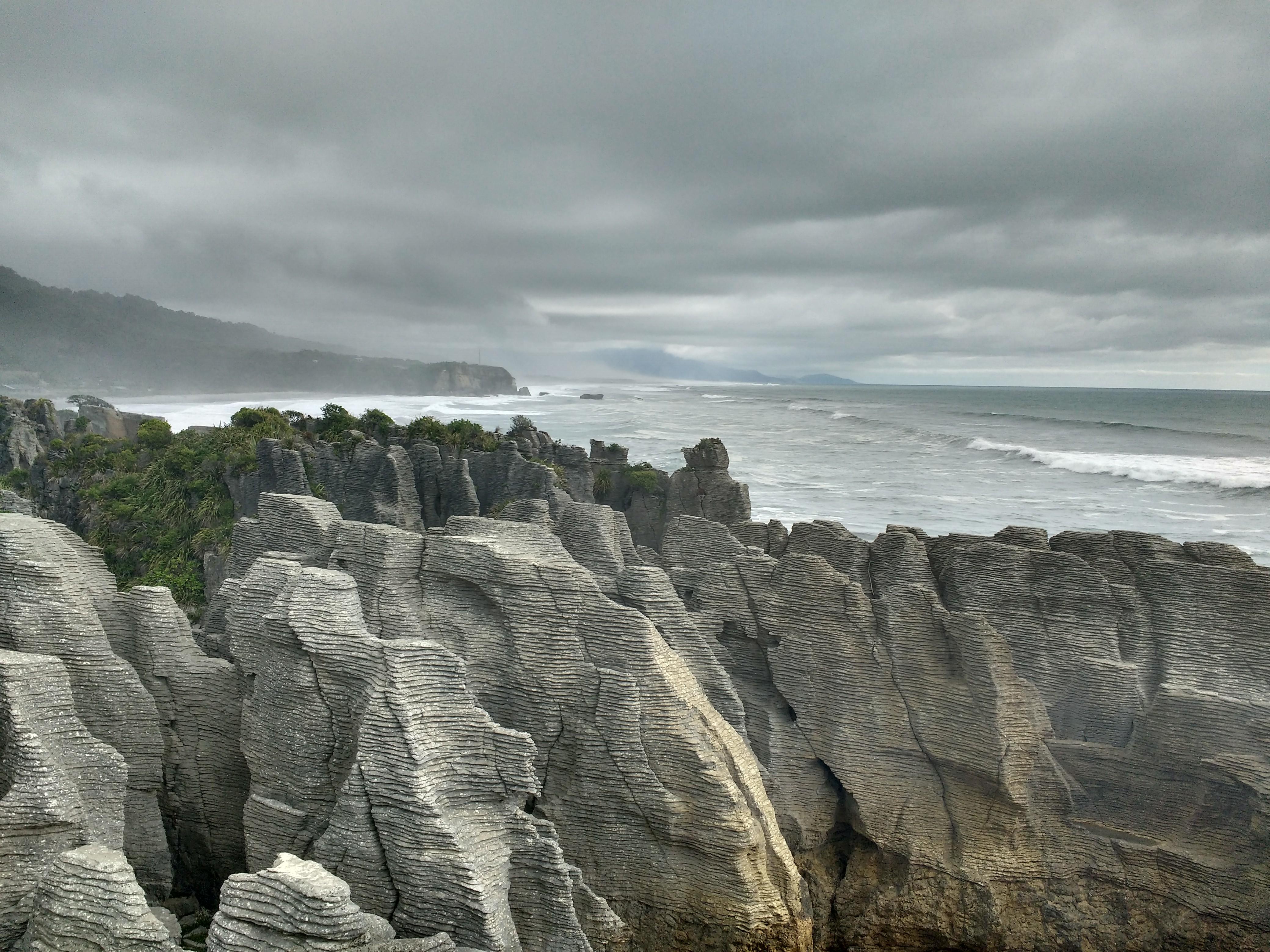 Auf der ersten Etappe bin ich nochmal über den Arthurs Pass gefahren und habe mir den Rest der Westküste angesehen: Punakaiki war schon toll. Wilde Küste, tolle Küstenstraße und die berühmten Pancake-Rocks.